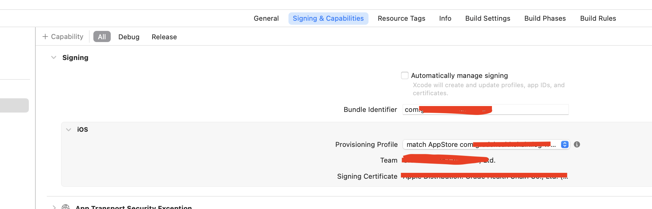 그 후 Xcode상에서도 오토 사이닝을 해체하고 match인증서로 선택해주셔야합니다! 이거 안하면 안돼용! 이거 찾느라 내다버린 내 시간...🥹